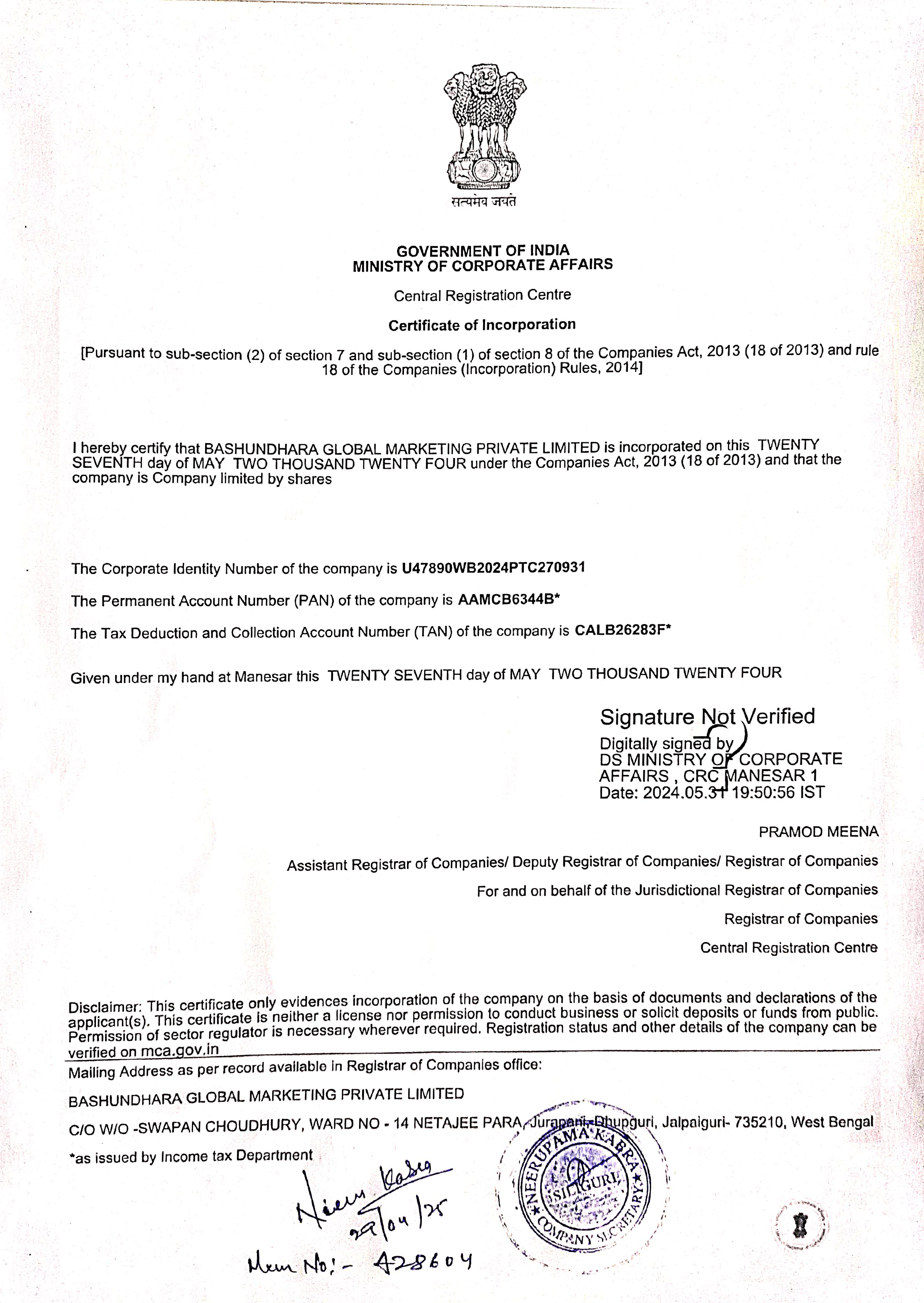 WELCOME TO BASHUNDHARA GLOBAL MARKETING PRIVATE LIMITED